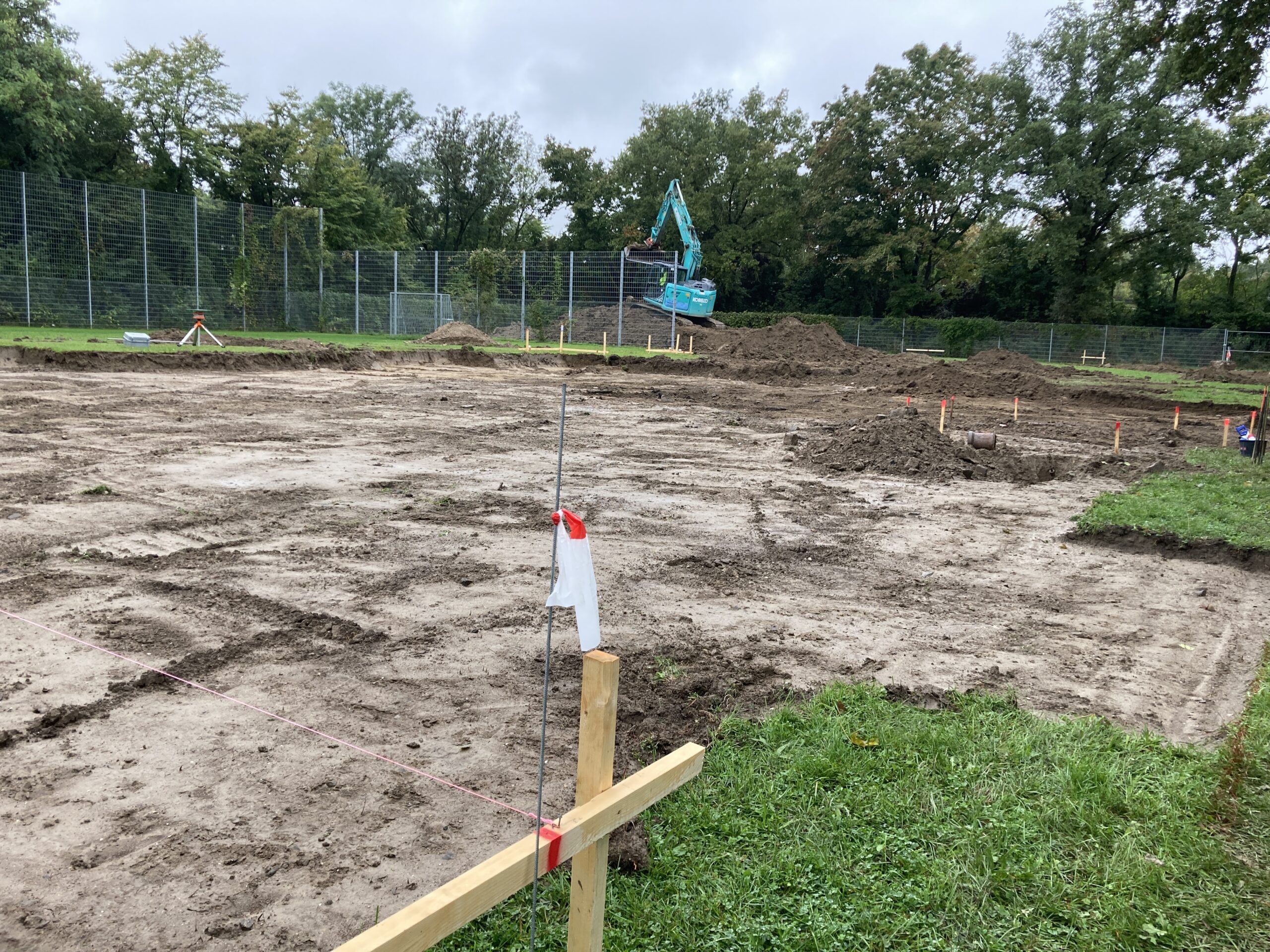 Die Bestelle ist eingerichtet. Die grobe Absteckung ist erfolgt, und die ersten Tiefbauarbeiten sind gestartet.