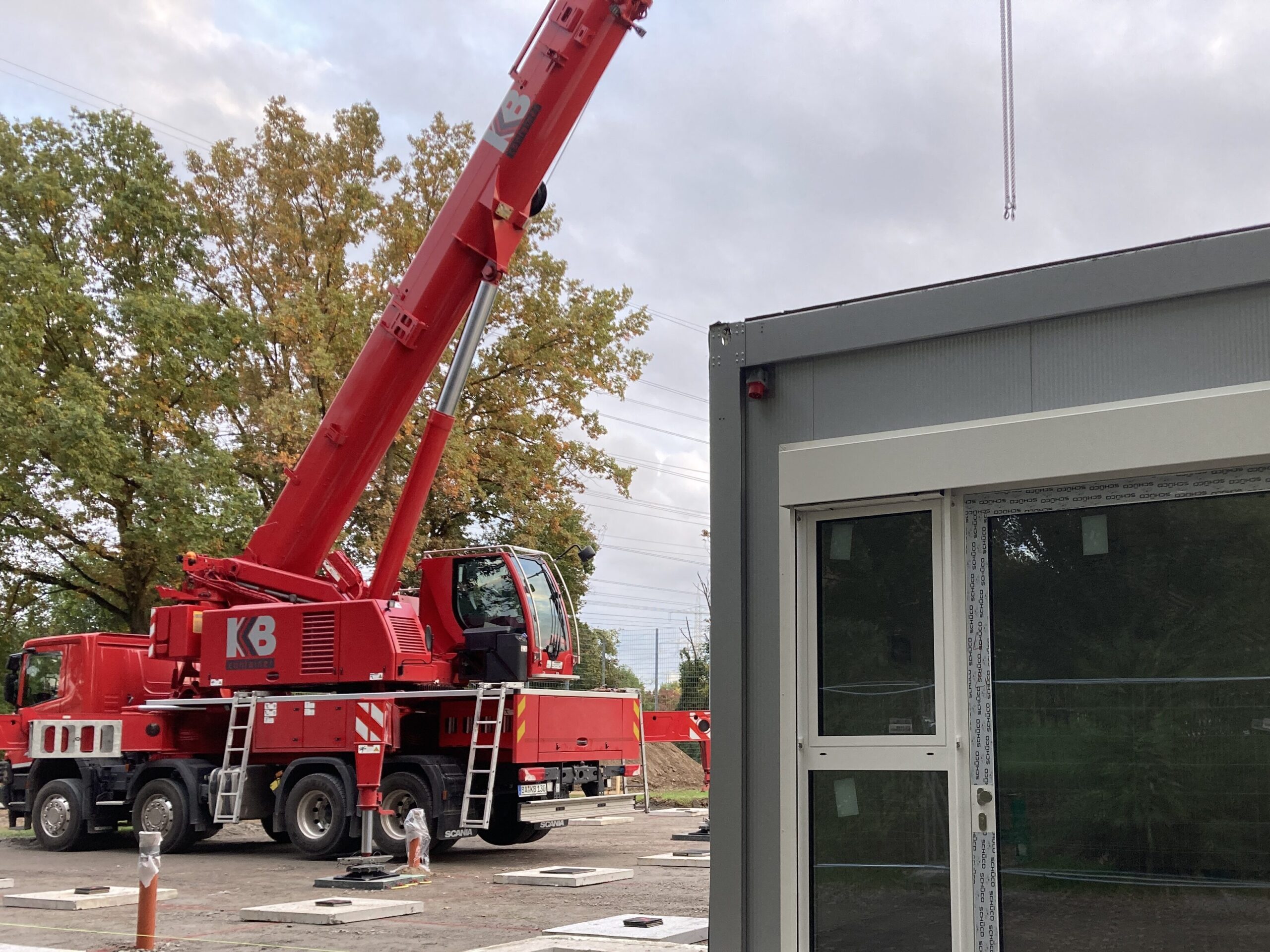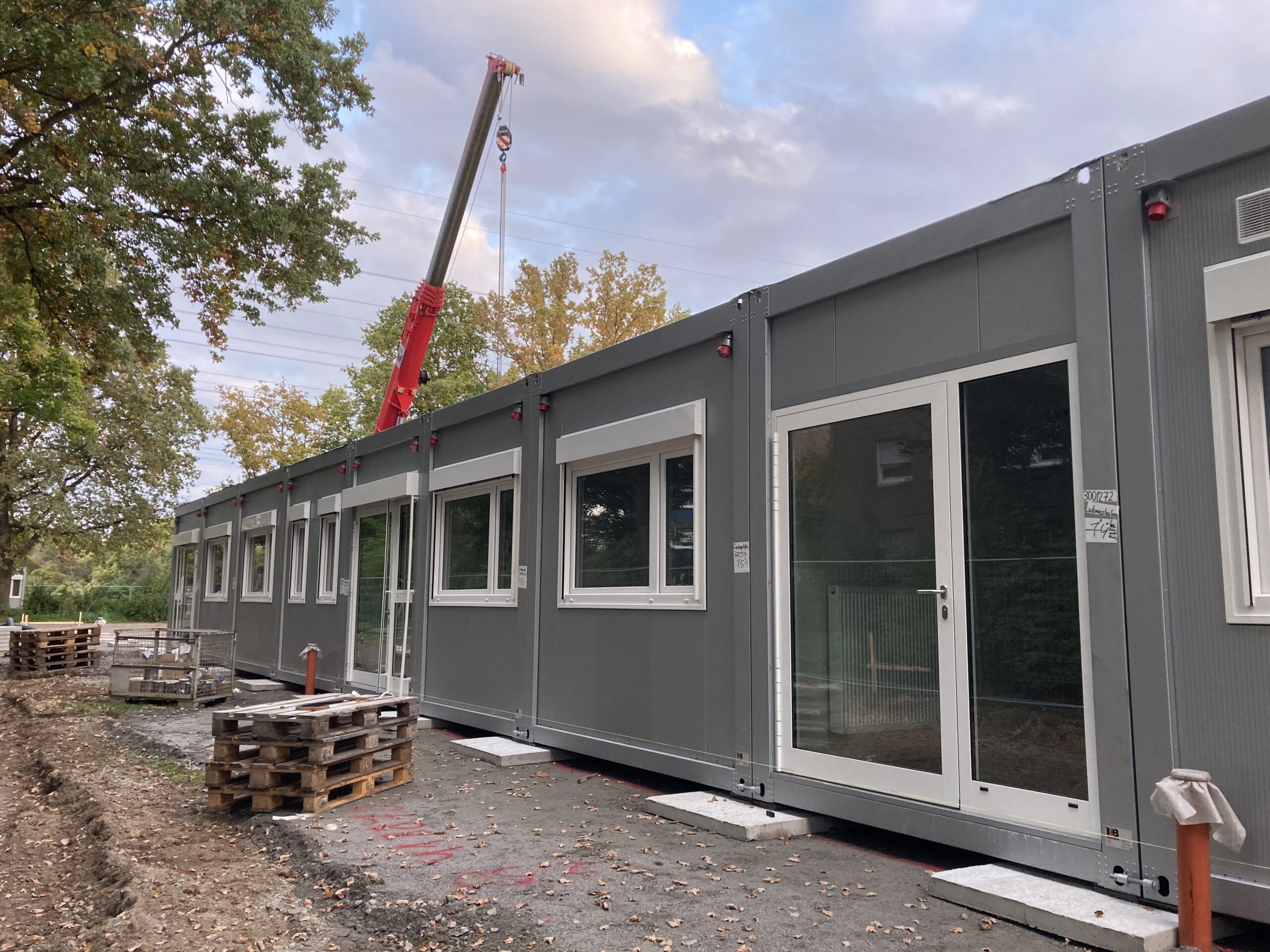 Ein großer Schritt ist geschafft: Der Autokran steht bereit, und die ersten Container für die Übergangseinrichtung der Kita Regenbogen sind eingetroffen. Stück für Stück entsteht nun die neue Containeranlage, in der die Kinder während der Bauzeit betreut werden.