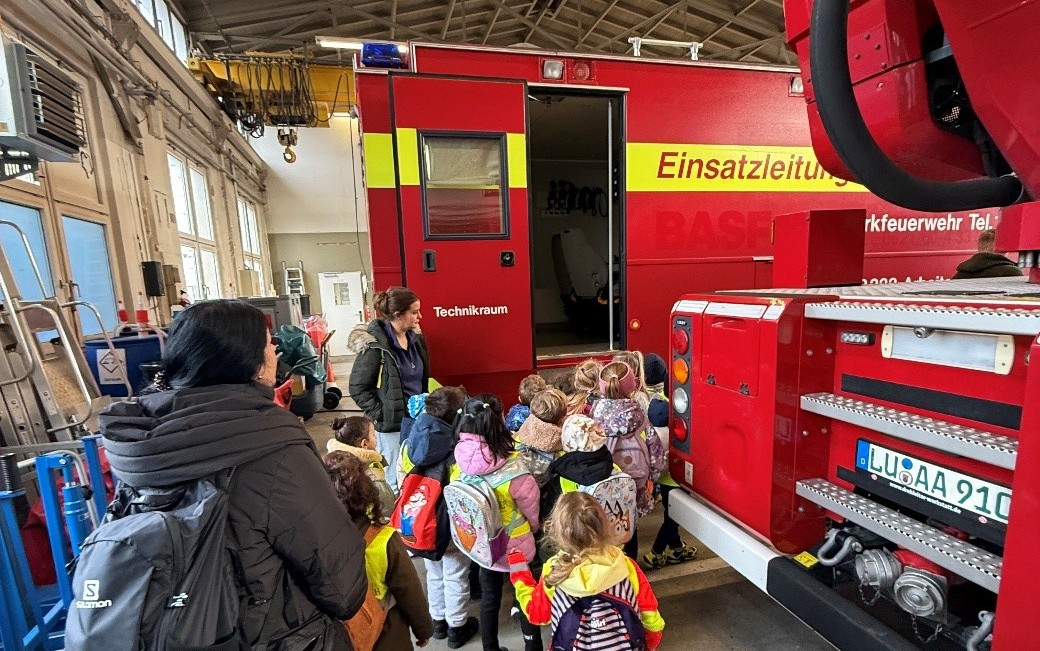 Foto: Kita Louise-Scheppler/Karlein Am Mittwoch, den 29.10.2025 stand für die Kinder unseres Kindergartens ein ganz besonderes Erlebnis auf dem Programm: Ein Ausflug zur Werkfeuerwehr der BASF!