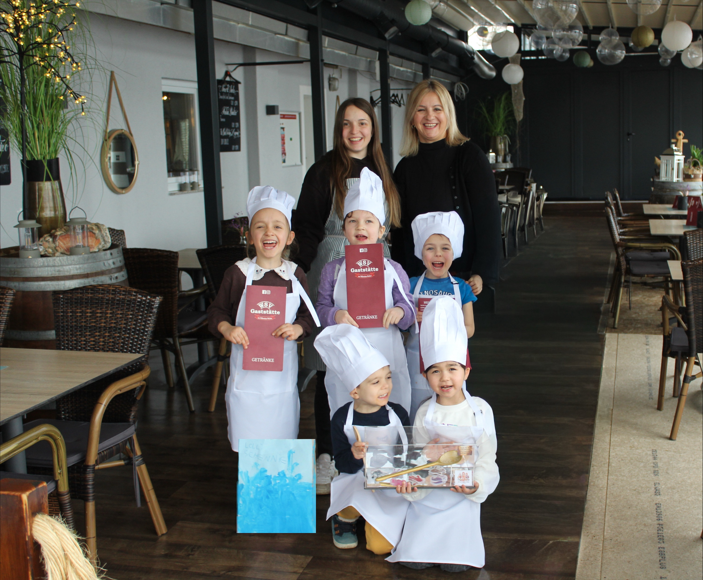 Ein ganz besonderer Dank gilt dem Team der WSV Gaststätte, insbesondere der Gaststättenbesitzerin sowie dem Chefkoch, die die Kinder an diesem Tag begleitet und betreut haben. Mit großem Engagement, viel Zeit und spürbarer Mühe wurde dieser Besuch ermöglicht. Die Gaststättenbesitzerin unterstützte das Projekt vollständig ohne finanziellen Beitrag und entwickelte für die Kinder den „Kinder-Cappuccino“, der für große Begeisterung sorgte. Gemeinsam mit dem Chefkoch durften die Kinder Spaghetti mit Tomatensoße kochen. Zum Abschluss wurde die „Lolli Schinnie“ Gruppe mit Waffeln und Eis belohnt.
