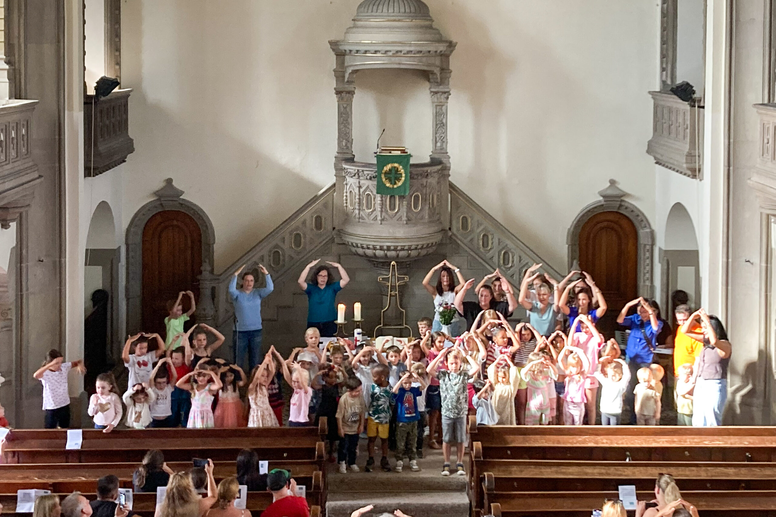 „Warum seid ihr hier?“, fragen im Gottesdienst die Puppen Lisa und Markus, hinter denen sich Nicole Scherer und Brigitte Herfurth-Owusu vom Team „Kirche mit Kindern“ verstecken. „Weltkindertag“, rufen die Kleinen laut. Genauso gut Bescheid wissen sie über ihre Rechte, denn sie haben sich in ihrer Kita ausgiebig damit beschäftigt: mit dem Recht auf Gesundheit und Bildung, dem Recht auf Schutz vor Gewalt, dem Recht auf Spiel und Freizeit, dem Recht auf Mitbestimmung und Gleichheit und mit dem Recht auf eine besondere Fürsorge für Kinder mit Behinderung.
