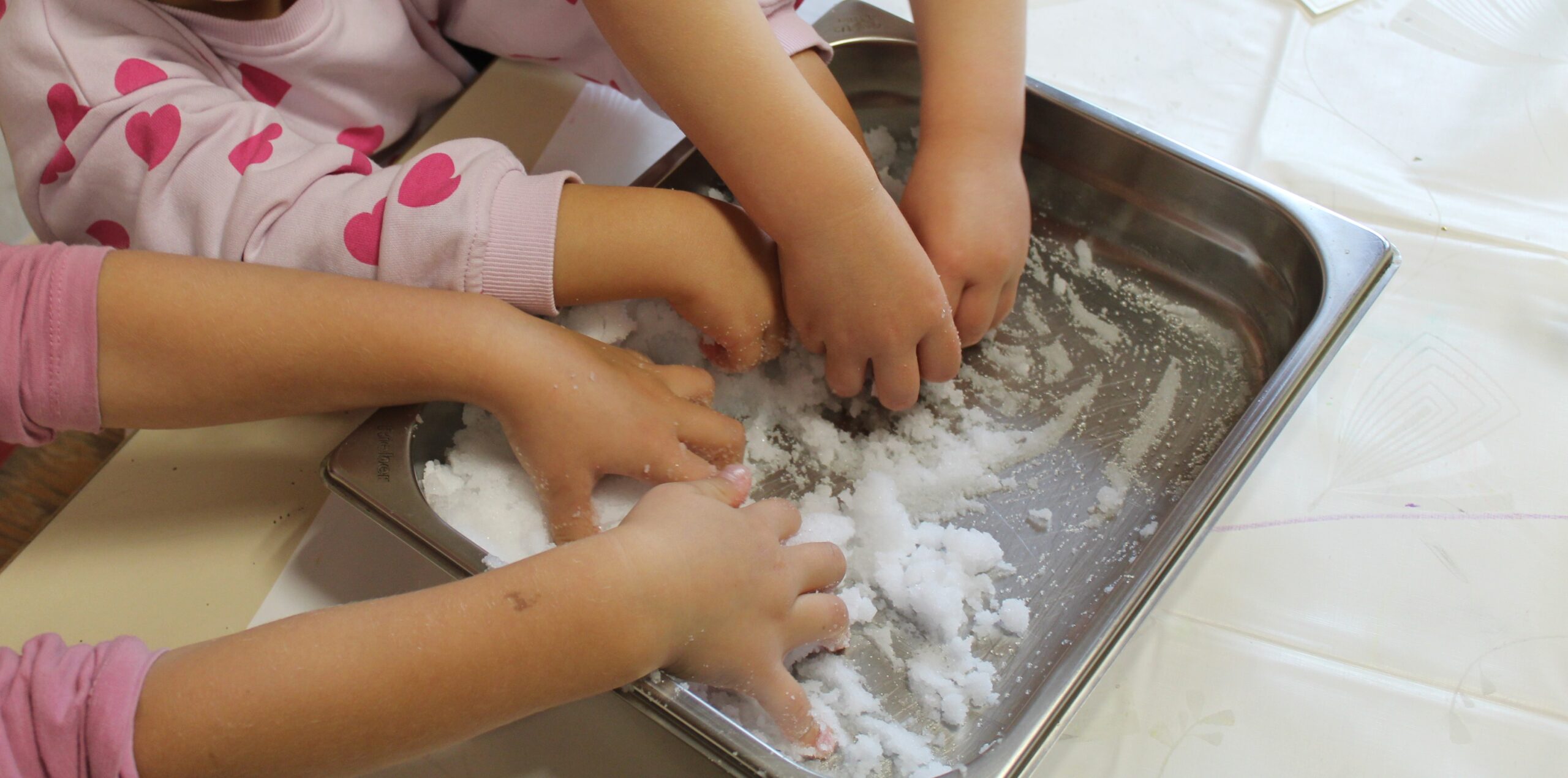 Cosima hat daraufhin mit den Kindern Eis zusammen hergestellt und eine „Arktislandschaft“ im Bewegungsraum aufgebaut, um den Kindern den Klimawandel und deren Folgen erlebbar zu erklären.